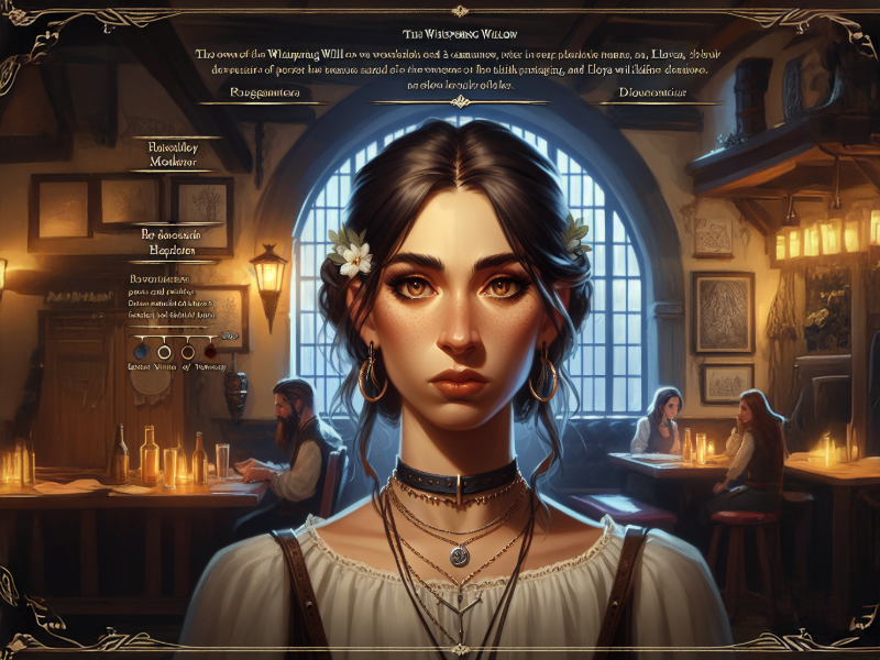 Meet Lysara Moonshadow, the enigmatic owner of the Whispering Willow Tavern, known for her mystical ambience and secretive nature.